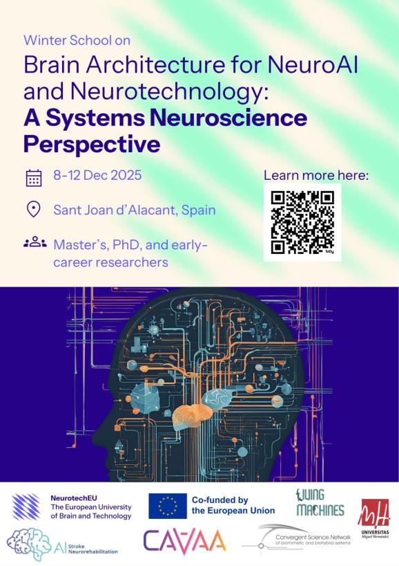 One of the primary challenges in neuroscience is understanding how different brain systems work together as an integrated and embodied system in the real world. This challenge has taken on a new dimension with the emergence of neuroAI, where principles of brain organization inform the development and analysis of avant-garde artificial intelligence systems. The Universidad Miguel Hernández de Elche is organizing the Winter School on Brain Architecture for NeuroAI and Neurotechnology: A Systems Neuroscience Perspective.