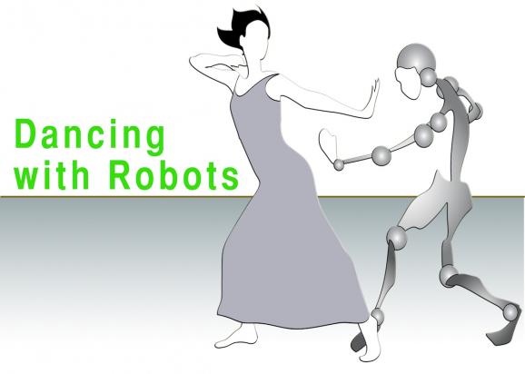 In the great set up of the Living Machines Conference exhibition at the Science Museum of London the EU project efAA (The Experimental Functional Android Assistant) presents "Dancing with Robots". This is a contemporary dance piece where the humanoid robot iCub dances with the human performer Anuska Fernandez. A continuous action based dialogue is established between the machine and the human that creates a transcendent aesthetic experience. This piece is an experiment in exploring the boundaries of human-machine confluence and the ability to realize an hybrid human-machine aesthetic.