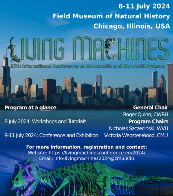The conference ighlighs the most exciting research on biomimetics and biohybrid systems united by the theme of “living machines”. Organized by the Case Western Reserve University, and Northwestern University, USA and hosted at the Field Museum of Natural History in Chicago, USA